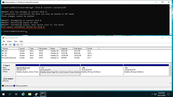 2. Convert MBR to GPT in Windows with 10 MBR2GPT command
